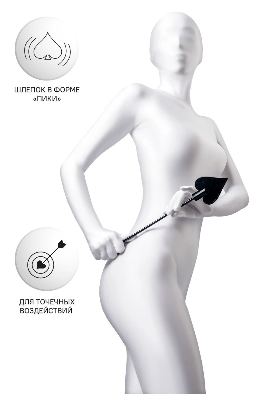 Доминирование и подчинение с помощью ограничения свободы — это еще не все, что вы можете сделать друг с другом. Черный стек с наконечником в форме сердечка-пики пригодится для ощутимого наказания непослушного партнера. Хлесткие точечные шлепки или указка – заигравшийся сабмиссив быстро поймет свою ошибку. Каждый неверный шаг, звук или поворот головы будет немедленно наказан с помощью жесткого стека из искусственной кожи. Сочетание напряжения, власти и элегантности – с этим стеком можно наказать провинившегося сабмиссива и еще раз продемонстрировать кто в паре главный. Материал: искусственная кожа. Цвет: черный. Общая длина: 36 см. Длина наконечника: 8 см Ширина наконечника: 7 см.
