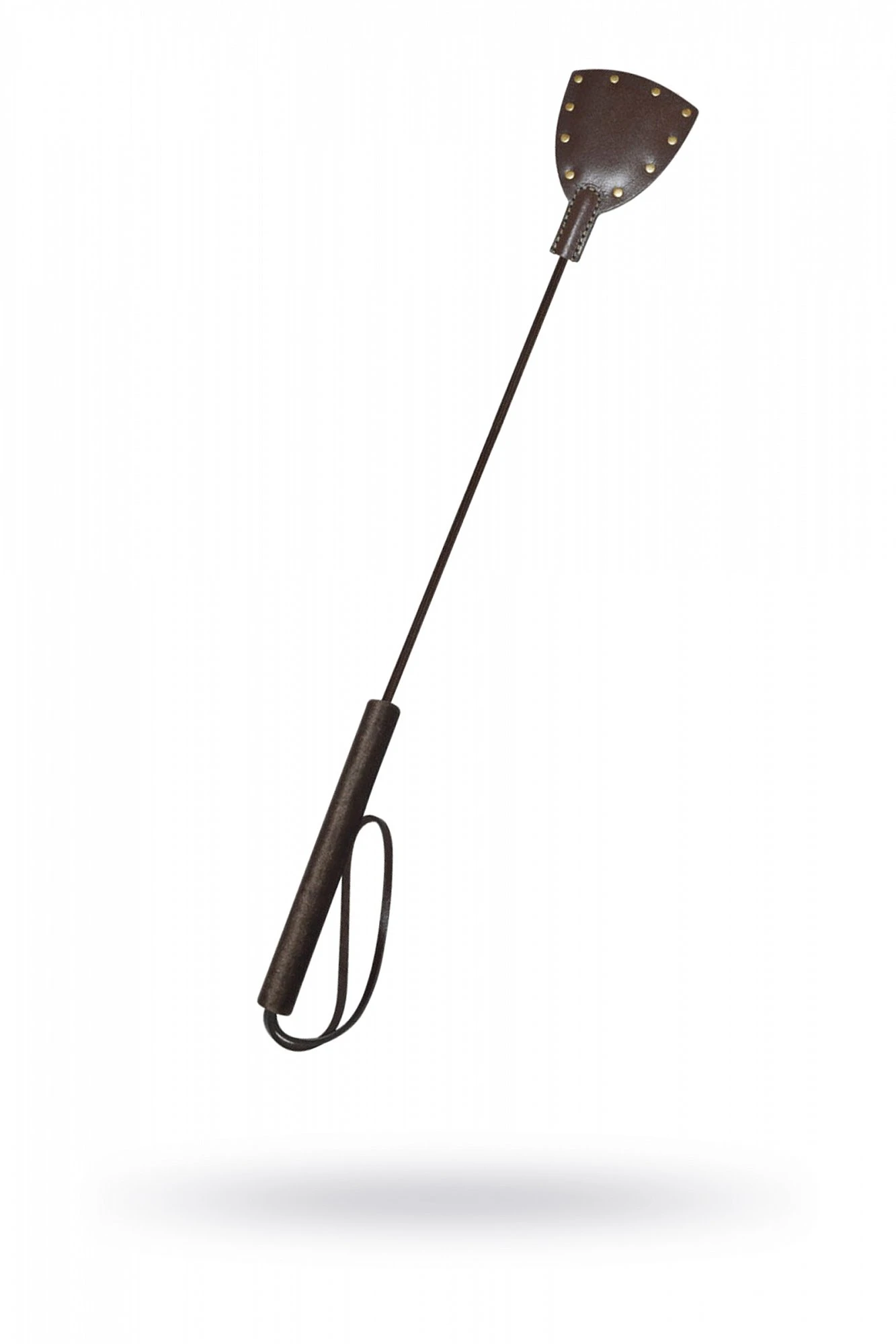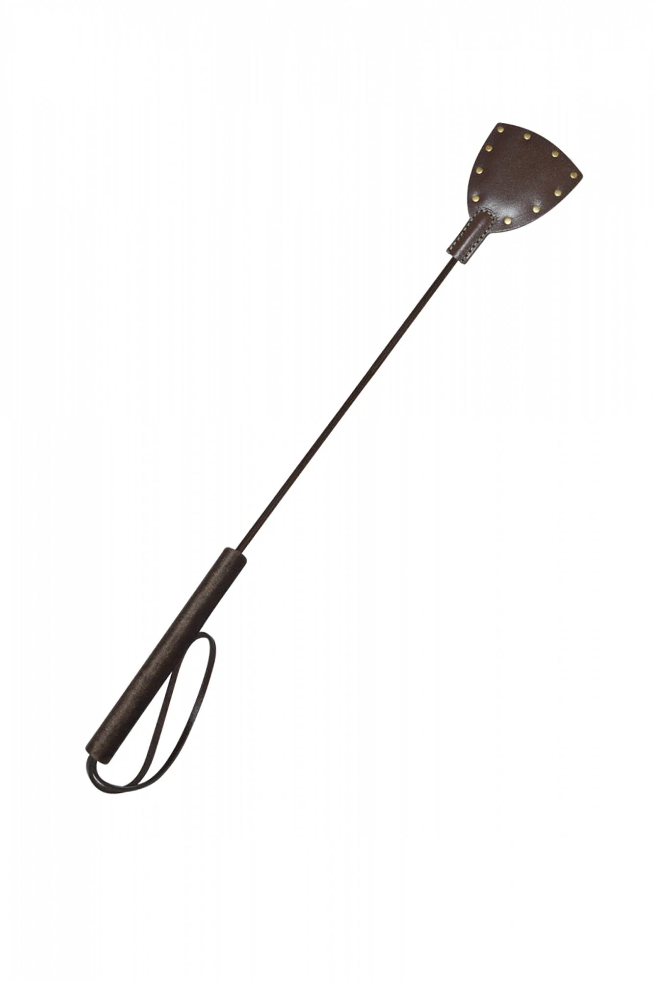 Стек из серии Готика представлен в виде роскошного, изящного изделия цвета темного шоколада. Основательная хлопушка стека изготовлена из натуральной кожи высокого качества и украшена большим количеством клёпок. Хлопушку и рукоять соединяет упругий, но прочный хлыст. Комфортное использование девайса обеспечивает бархатистая рукоять, покрытая велюровой тканью. Ремешок-петля, находящийся на рукояти, позволяет дополнительно фиксировать стек на запястье. Цвет: коричневый. Общая длина 65 см.