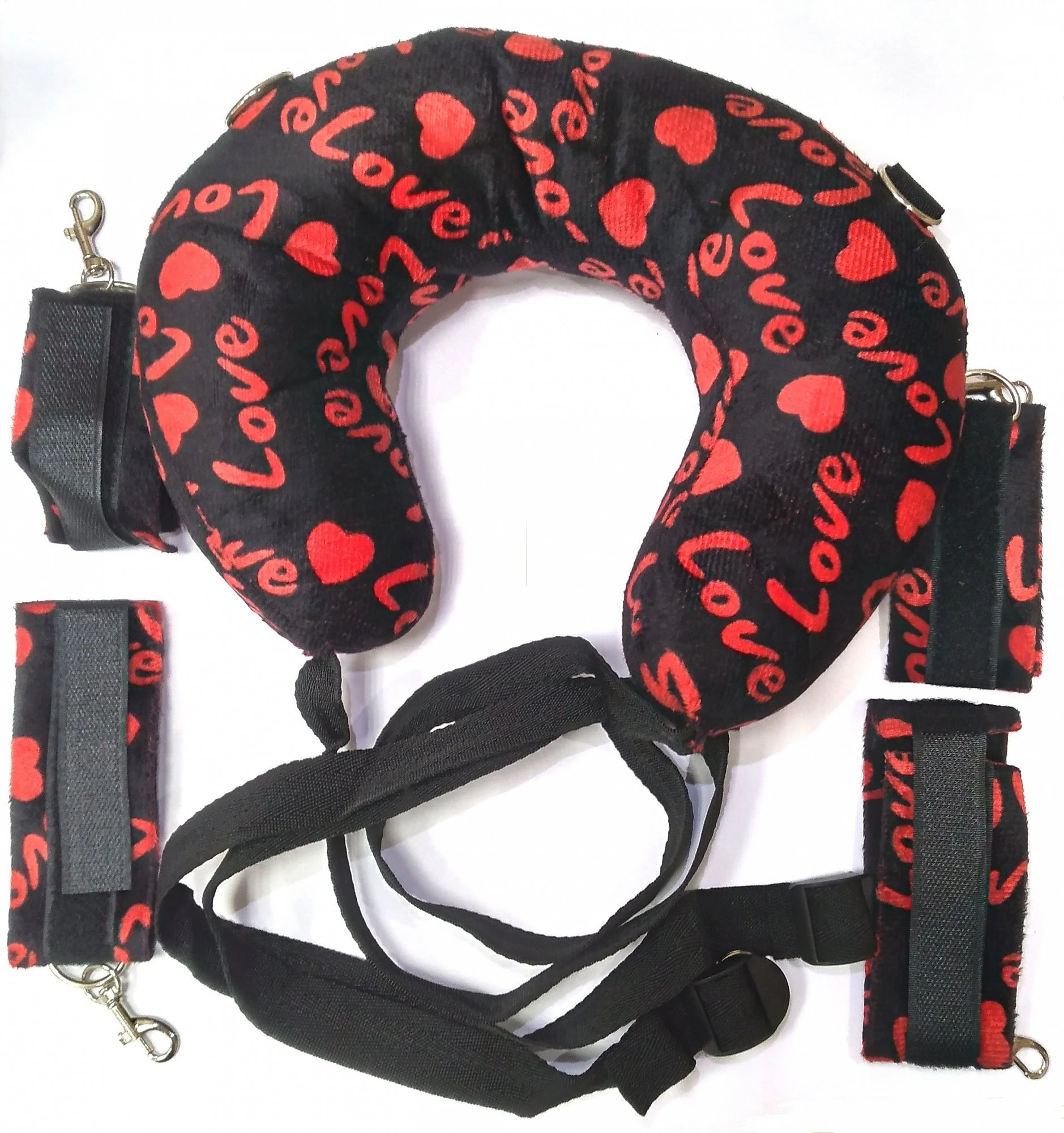 Чтобы экспериментировать и получать новые ощущения, необязательно быть опытным БДСМ-практиком. Главное, что должно волновать вас – это взаимное удовольствие. Для этого вам пригодится стропа для фиксации. Больше не нужно тратить силы на удерживание ног в нужной позиции. Мягкая подушка комфортно обхватывает шею, расслабляя ее и снимая нагрузку с позвоночника. Ремни регулируются и настраиваются по вашему желанию, чтобы удерживать бедра или лодыжки в нужном положении. Фиксирующая стропа оснащена также наручниками, позволяющим закрепить запястья у шеи, и лишить подчиняющегося партнера возможности двигать руками. Стропа для фиксации с подушкой для шеи поможет сосредоточиться на собственных ощущениях и подчиняться с комфортом. Материал: велюр, нейлон, полиэстер. Размер: общая длина 115 см, внешняя окружность подушки 75 см, внутренняя окружность подушки 35 см, длина наручников 22 см, длина поножей 26,5 см, ширина подушки 8 см, ширина наручников и оков по 5 см, длина стропы 90 см.
