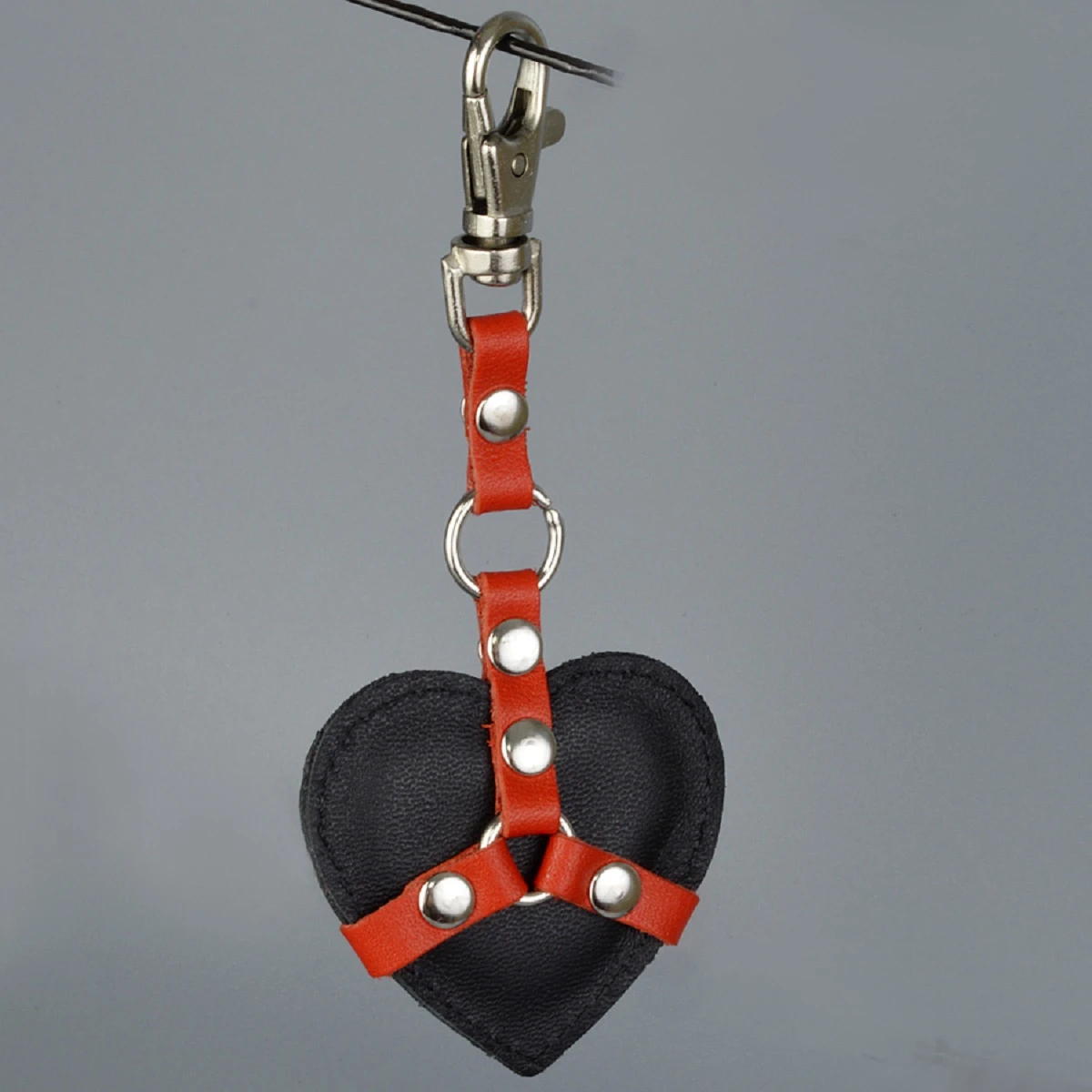 Оригинальный и забавный сувенир-подвеска – это миниатюрное изделие в форме сердечка. Подвеска изготовлена из натуральной кожи и украшена клепками и красными ремешками. Необычная маска BDSM может служить автомобильной подвеской, украшением для сумки, а так же приятным презентом для Ваших друзей и знакомых. Общая длина около 12 см, ширина 5,5 см. Цвет черный с красным.
