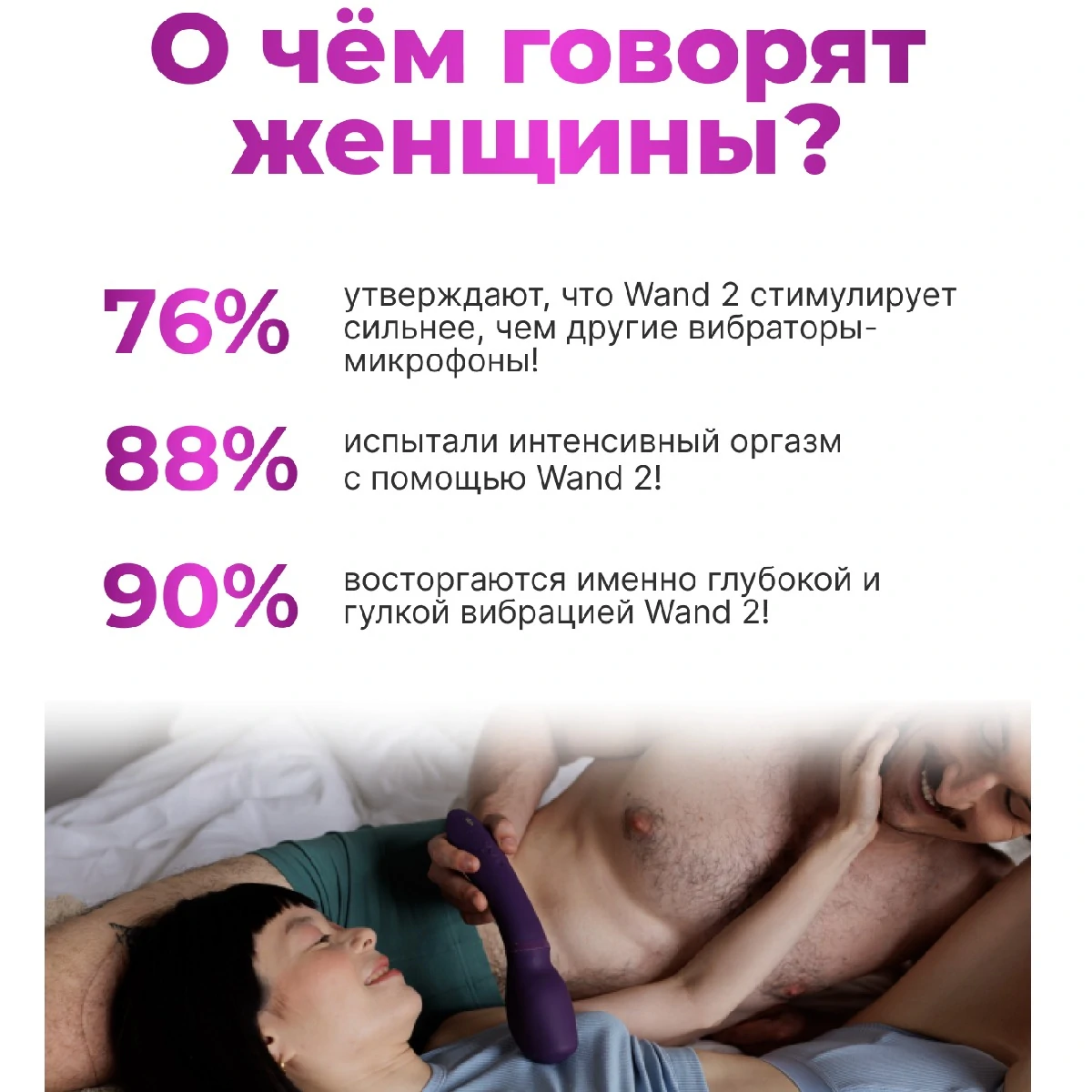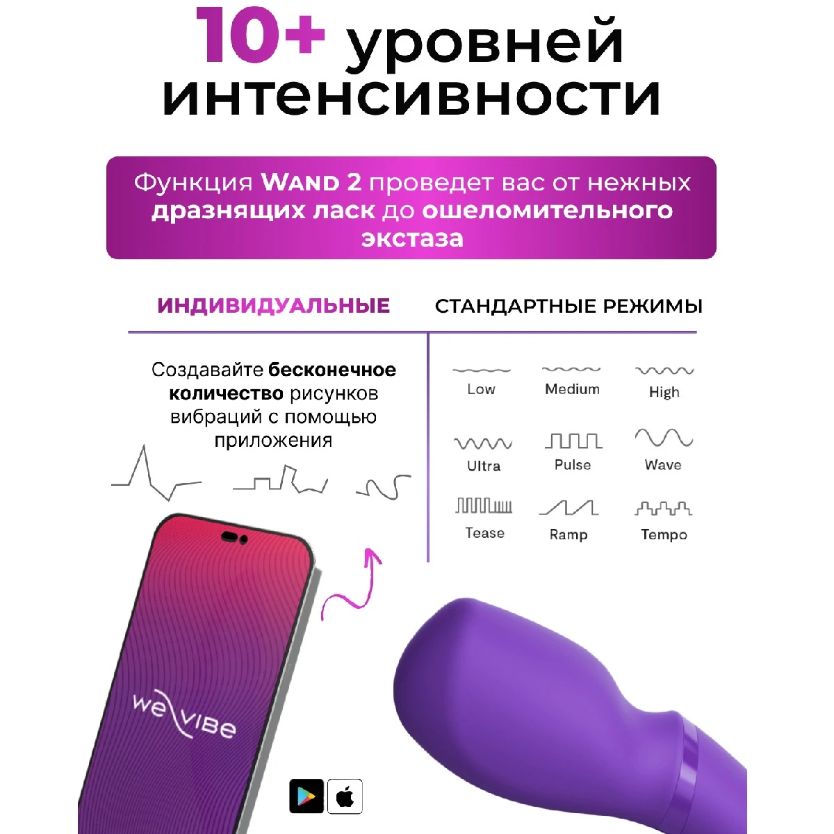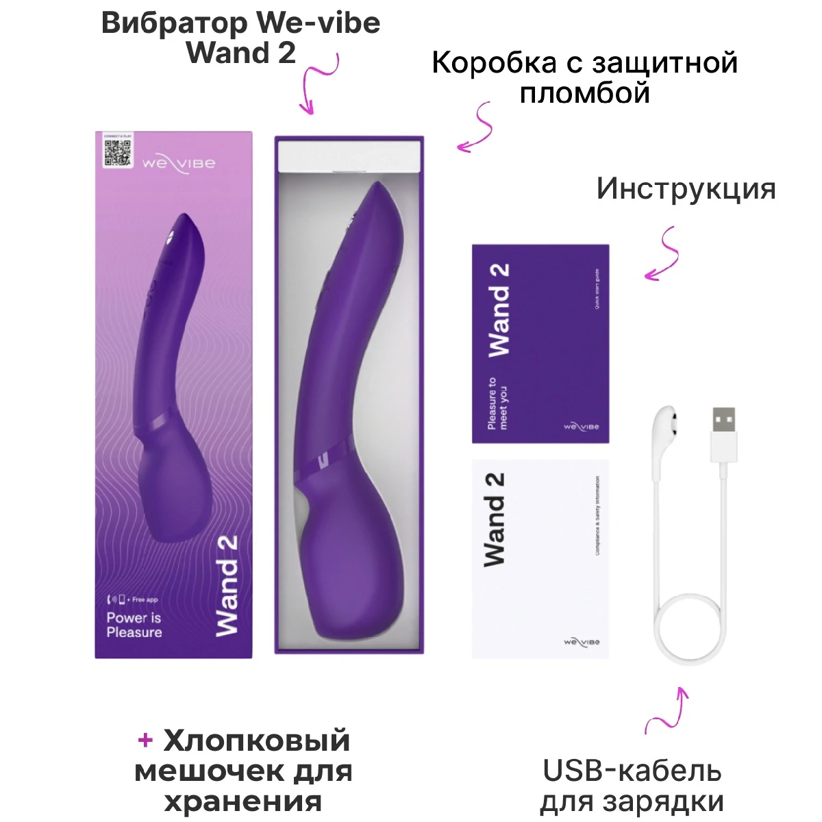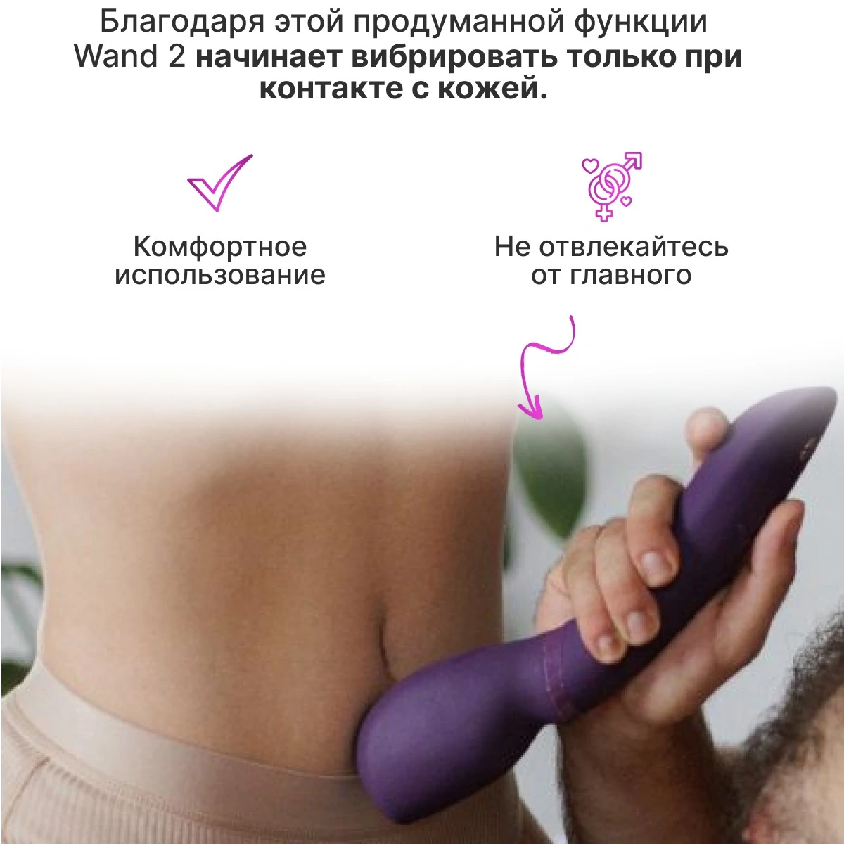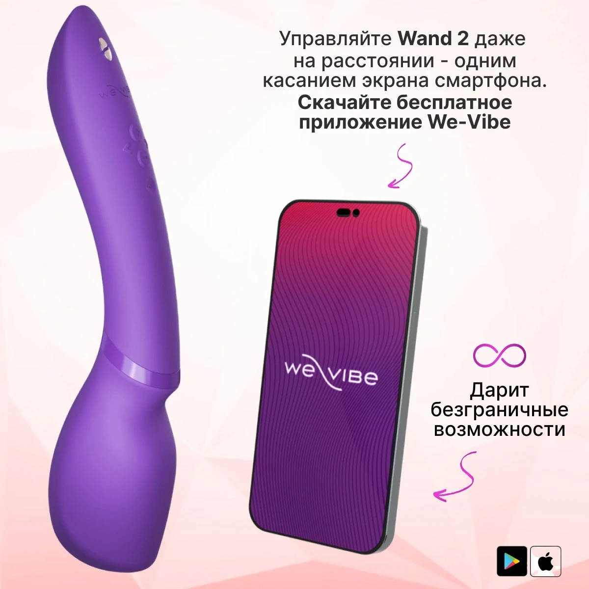 We-Vibe Wand 2 — это мощный беспроводной вибратор, который подарит вам незабываемые эмоции. Гибкая головка и удобная ручка обеспечивают глубокую стимуляцию именно там, где вы хотите. Wand 2 имеет простое и понятное управление на самом устройстве, а ещё его можно контролировать через приложение We-Vibe и подбирать индивидуальные ритмы и рисунки. Наслаждайтесь удовольствием на любом расстоянии. Скачайте приложение на свой смартфон и отправьте приглашение партнеру, играйте вместе даже если вы далеко друг от друга. Еще одна уникальная функция Wand 2 – это Smart Silence, она включает вибрации только при соприкосновении с кожей и делает использование устройства еще комфортнее. При желании ее можно отключить. Многофункциональная гибкая головка вибратора с эргономичными выступами покрыта силиконом высокого качества, который безопасен для вашей кожи. Wand 2 полностью водонепроницаем и подходит для игр в душе. Размер: длина 27,3 см, диаметр 5,6 см. Цвет фиолетовый.