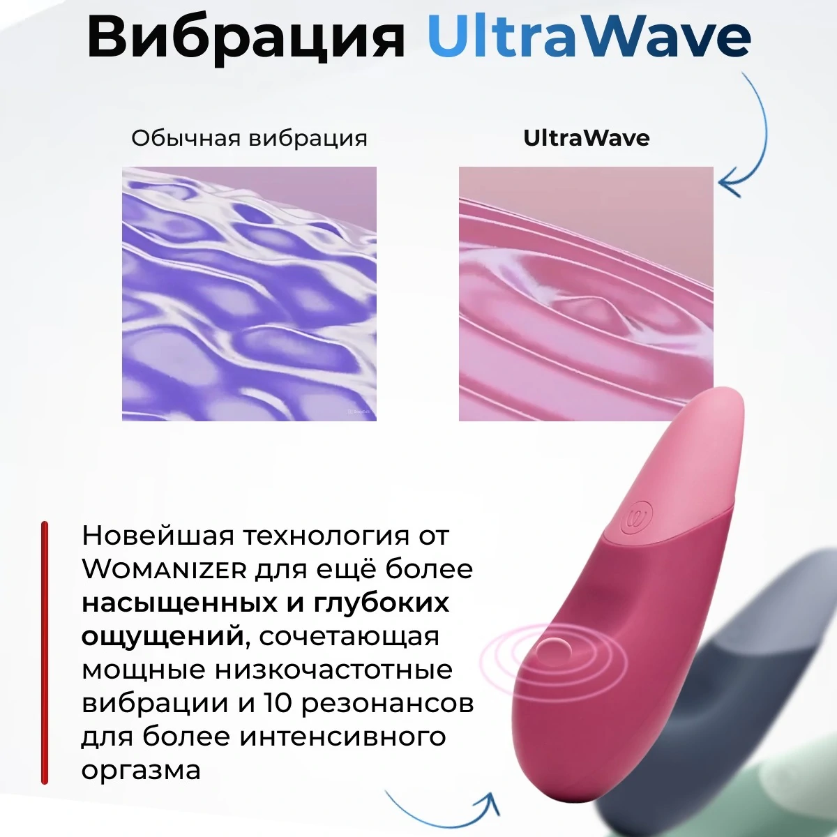 Vibe от Womanizer — это бесшумный клиторальный вибратор, который предлагает новый вид стимуляции благодаря технологии UltraWave Vibration. Эта технология создаёт глубокую и всепроникающую вибрацию, обеспечивая насыщенные и интенсивные оргазмы без чрезмерной стимуляции. Уникальная форма Pleasure Edges разработана специально для усиления удовольствия, используйте вибратор как с более широкой, так и с рельефной стороны и получайте различные ощущения от прикосновений к телу. Нажмите кнопку Autopilot, чтобы выбрать одну из трёх программ вибрации. Эти программы, вдохновлённые музыкальными композициями, они подарят непредсказуемые ощущения на пути к оргазму. Линейный мотор делает Vibe бесшумным, а это значит, что ничто не будет мешать получению чистого удовольствия. Вибратор заряжается через магнитный USB-кабель и имеет водонепроницаемый корпус со степенью защиты IPX7, что гарантирует разнообразие развлечений и лёгкость очистки. Игрушка обладает 10 режимами интенсивности и работает до 90 минут при полном заряде.