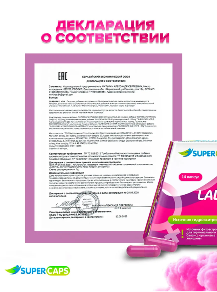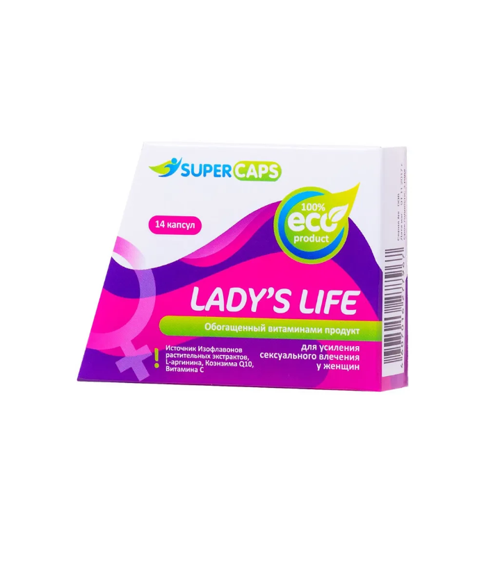 Возбуждающие капсулы ЛэдисЛайф - это комплексный продукт для усиления сексуального влечения у женщин. Содержат только натуральные компоненты обогащенные витаминами (экстракты ортилии однобокой, шиповника, родиолы розовой, корень ашвагандхи, гранулированное семя льна, L-аргинин, Коэнзим Q10). Продукт изготовлен по инновационной технологии гранулирования, с добавлением экстрактов и аминокислот, благодаря этому комплекс натуральных активных веществ оказывает общий тонизирующий эффект, наполняет тело энергией, стимулирует кровеносную систему, включая органы малого таза, обладает противовоспалительным действием. Взаимодействие Q10 и L-аргинина оказывают омолаживающее действие на организм и клетки кожи. Курсовой прием по 1 капсуле в день в течение 14 дней. Для быстрого эффекта принимать 2 капсулы за 1 час до близости.