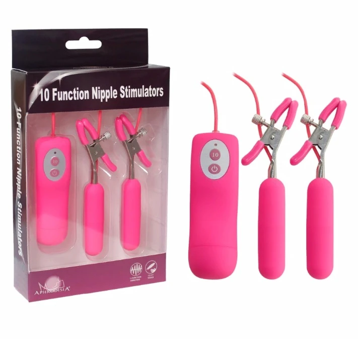 Зажимы для сосков с вибрацией 10 режимов розовые Д35015-1