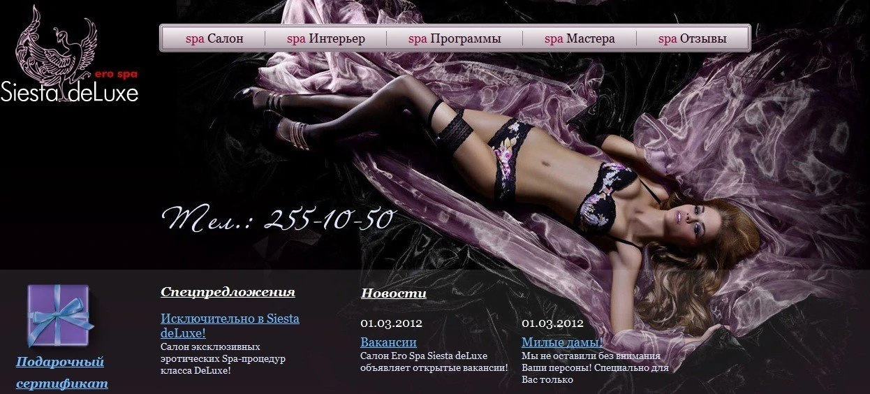 Салон «Siesta» существует с сентября прошедшего года, и уже добился успехов и большой посещаемости за счет своих уникальных предложений и индивидуального подхода к каждому, даже самому взыскательному клиенту. Салон работает круглосуточно и принимает всех желающих по записи.